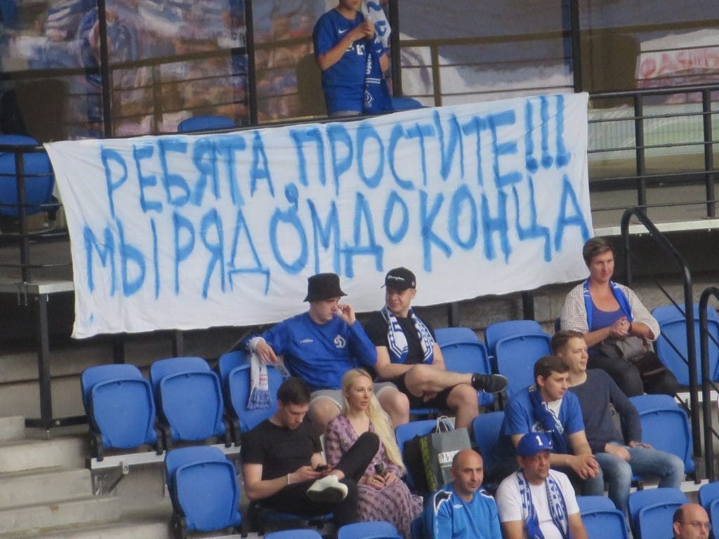 Три баннера были приготовлены к этому матчу болельщиками бело-голубых. Первый был выполнен для вдовы Льва Яшина и гласил: «Валентина Тимофеевна – ждем вас Дома». Второй – для футболистов: «Ребята, простите! Мы рядом и до конца», а третий был, к сожалению, по грустному поводу. Он касался трагедии в Хабаровске, в память, о жертвах которой и начался матч с минуты молчания.