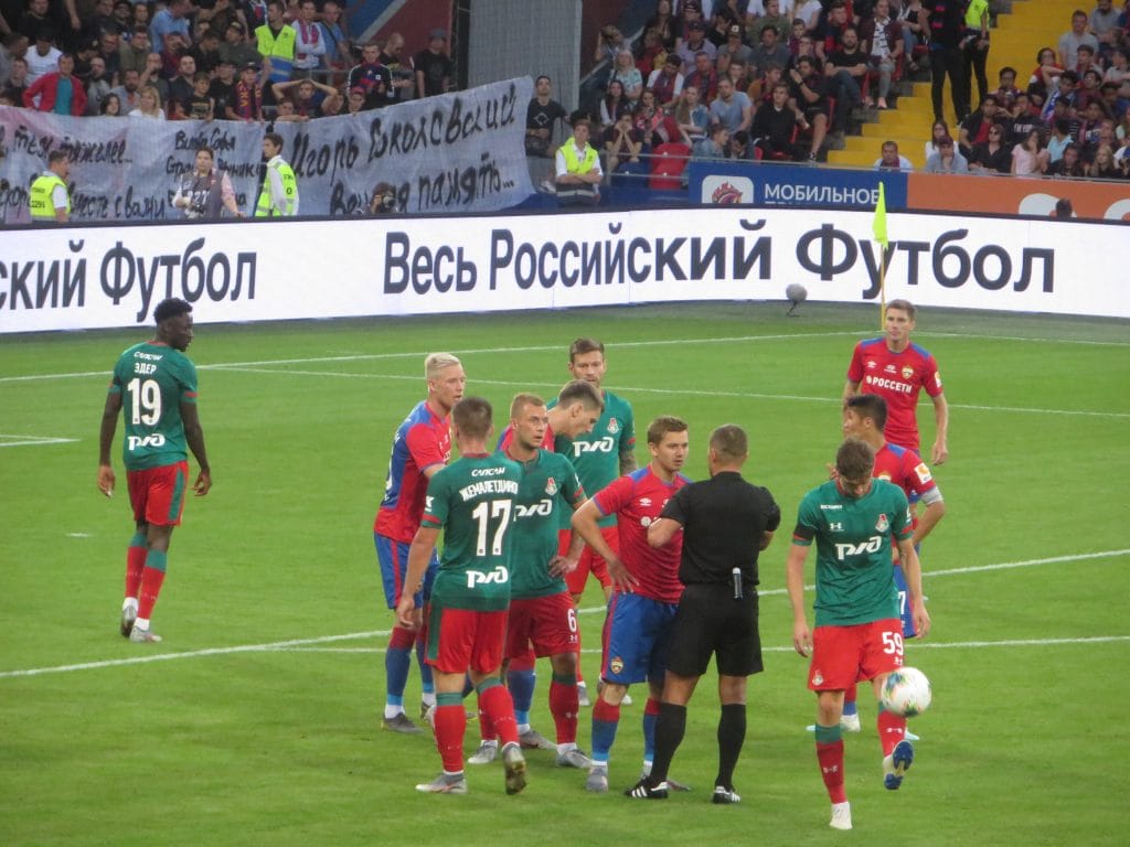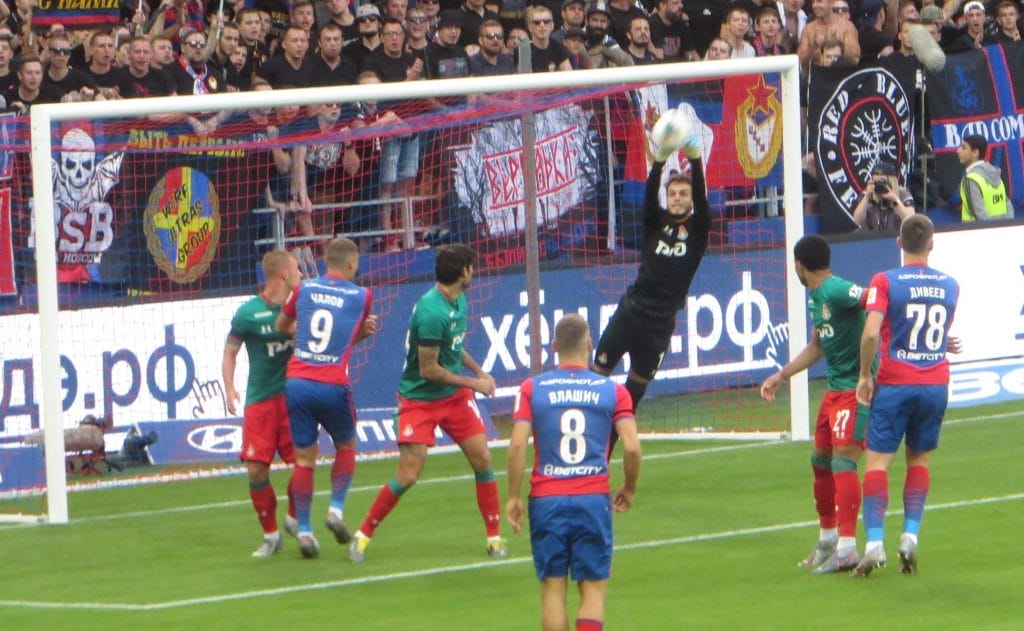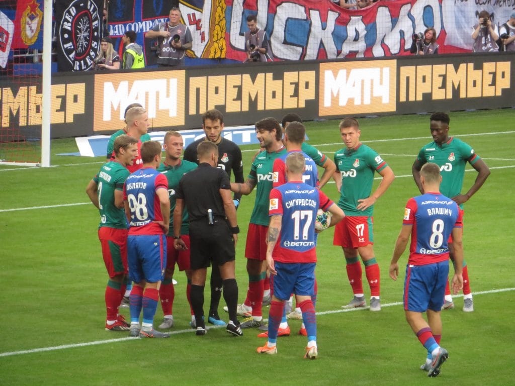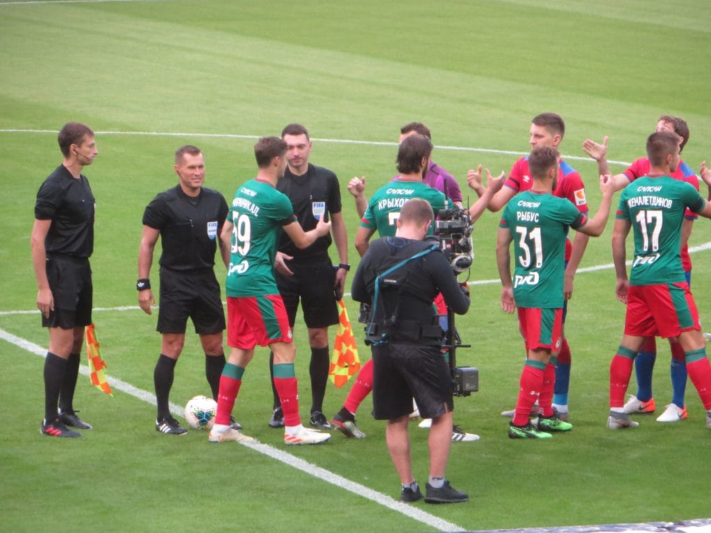Матч между коллективами юного (по тренерским меркам) Ганчаренко и маститого Семина начался с минуты молчания по жертвам хабаровской трагедии. Не прошло и десяти минут со стартового свистка московского футбольного противостояния, а питерскому рефери уже нужно было обращаться к помощи «телевизора». Железнодорожник Живоглядов сыграл рукой в своей штрафной. Арбитр внимательно и довольно долго просматривал повтор и принял решение не в пользу ЦСКА. Невообразимый гул заполненного стадиона никоим образом не повлиял на решения арбитра. Если мяч отскакивает от головы или тела игрока, то это нарушением не считается – судья прав, «садись – пять!».
