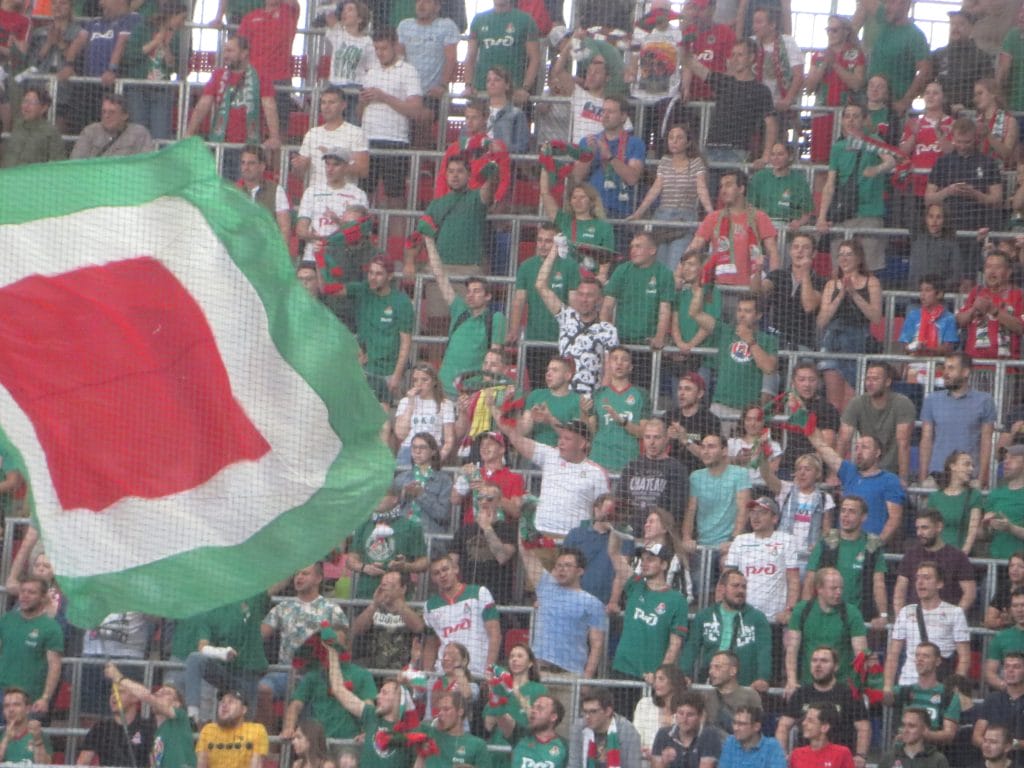 Первый тайм дерби выдался боевым, динамичным, но практически без ударов по воротам. Игроки много спорили, часто грубо атаковали друг друга, судья дважды обращался к помощи российского новшества в виде просмотрового черного ящика, а зрители гнали своих игроков вперед. В этом матче даже «Локомотив» выбрал всю квоту, и трибуна железнодорожников не зияла пустотами. Призыв «Юрий Палыч!» звучал довольно часто с заполненного гостевого сектора.