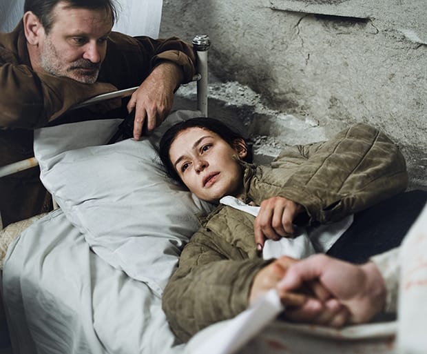 Через трубочку. Засыпали мы Юлю тоненьким слоем земли 10-15 см, для нас это была чепуха, но она рассказывала, что ей было очень страшно. Во-первых, под землей очень холодно, а во-вторых, время под землей течет по-другому, Юле казалось, что мы засыпали ее и забыли. И вообще что смена давно закончилась, и мы уехали, а на самом деле прошло только 30 секунд. Для нас это 30 секунд, а для нее это казалось вечностью. Как после этого решиться на второй дубль? На съемках с нами была Аня, дочь Юлии, ей было около 4-х лет. Я посадил ее на колени, мы посмотрели первый дубль. И я ее спрашиваю: “Анечка, тебе нравится этот дубль? Будем маму еще зарывать в землю? Она просит – еще раз покажи. Посмотрела, подумала и говорит – нужен дубль, мама иди!”