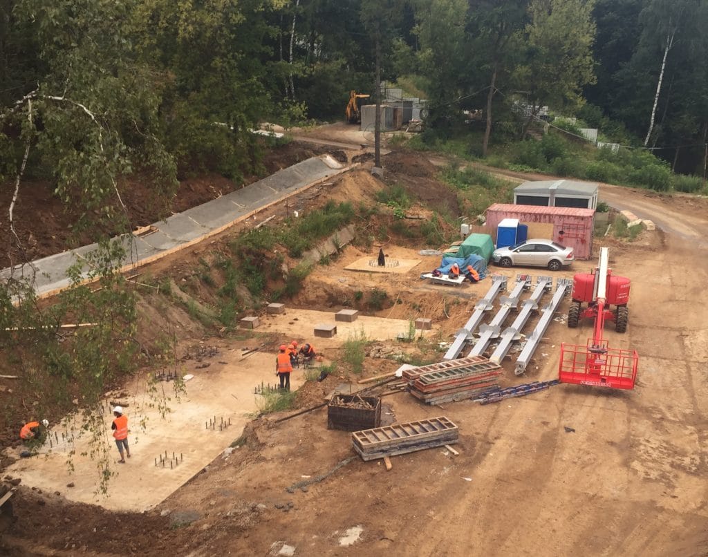 В настоящее время ведется монтаж основания исторического прыжкового трамплина. Первый большой трамплин для прыжков на лыжах в Москве появился в 1953 году. Горнолыжный кластер Воробьевых гор продолжал активно развиваться вплоть до середины 80-х годов прошлого века. Однако в дальнейшем уникальная спортивная инфраструктура этой территории, включая исторические трамплины, начала приходить в упадок.