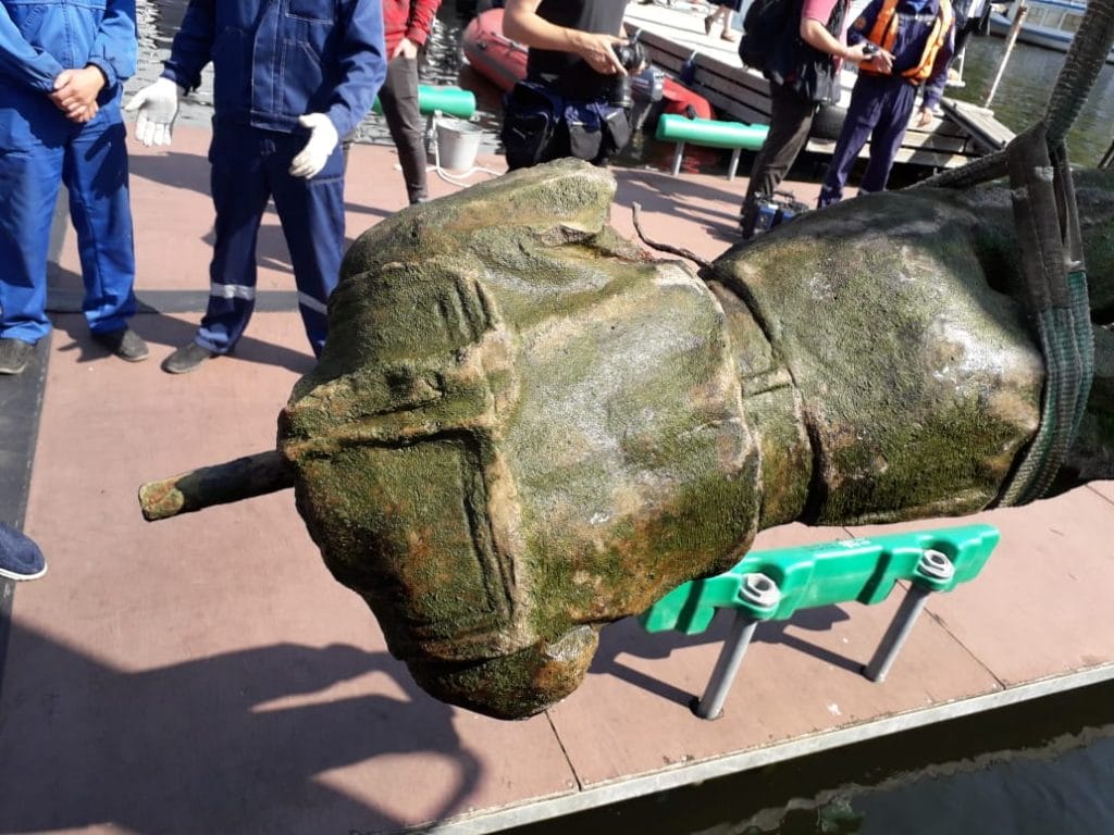 В районе Южнопортовый на берегах Кожуховского затона со дна реки подняли старую бетонную статую. После реставрации она станет одной из жемчужин района.