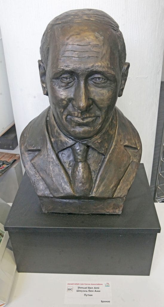 Один из авторов – известный скульптор Шмуэль Бен Ами работает с образами известных людей и образом власти. На выставке представлена скульптура Президента РФ Владимира Владимировича Путина, которого скульптор изваял в бронзе. По словам автора, образ Владимира Владимировича для него, как образ современной России. Именно Россия (СССР, если быть точным) проголосовала в ООН в поддержку создания государства Израиль на территории Палестины. Этим действием тогда был внесен немалый вклад в образование Израильского государства, но мало кто вспоминает об этом сейчас в Израиле. Автор, по своему, как художник, восстанавливает историческую справедливость, привлекая внимание к образу российского президента. Свою работу Шмуэль Бен Ами хочет преподнести в дар Владимиру Путину.