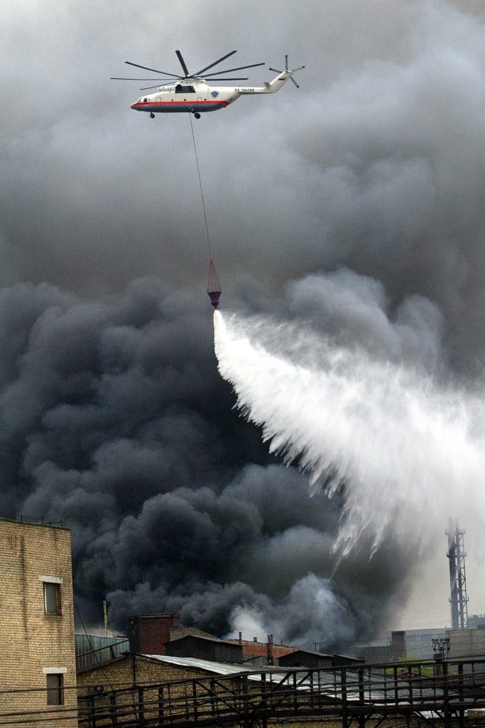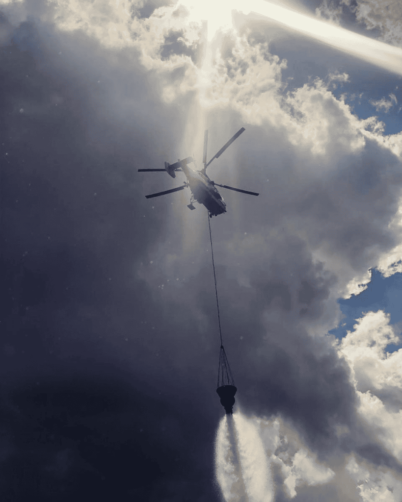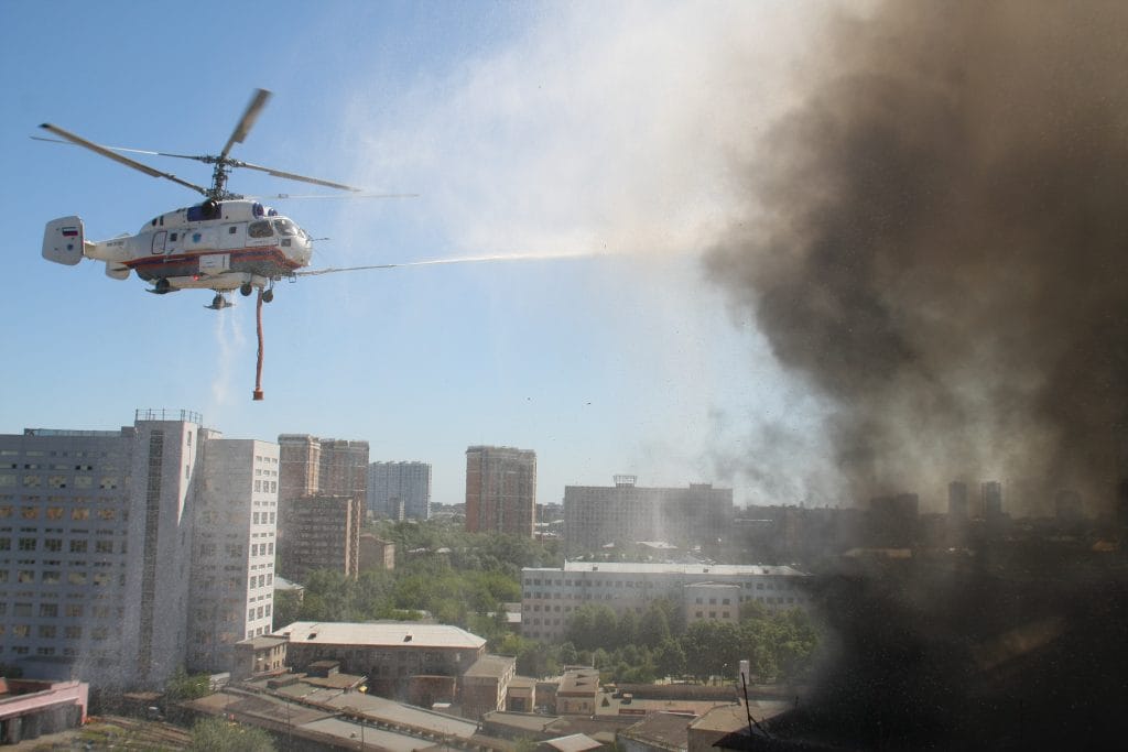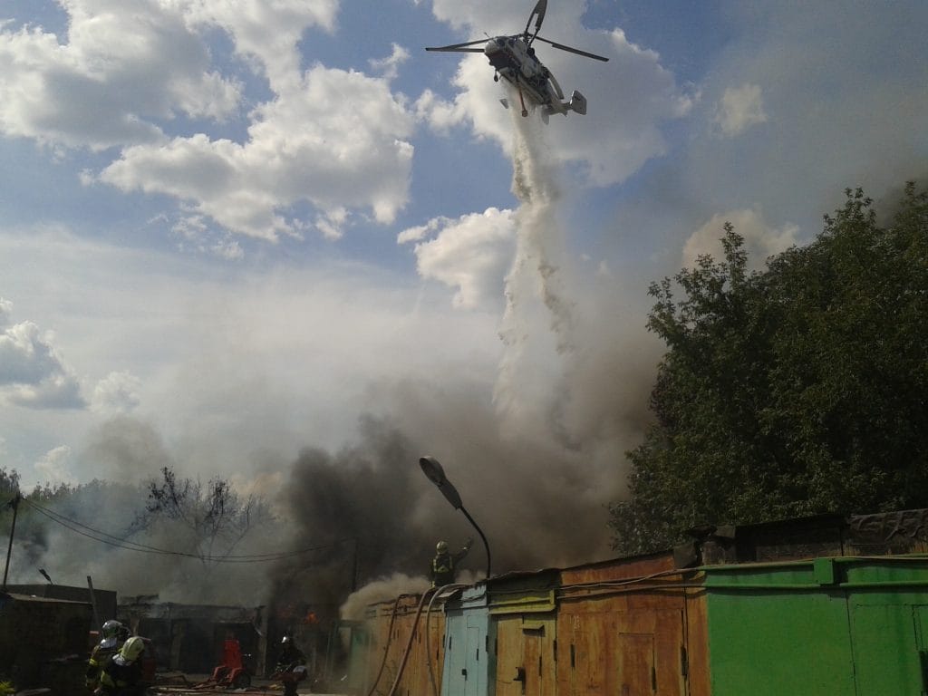 Для тушения пожаров с воздуха применяются вертолёты Ка-32А и Ми-26Т с установленным комплексом противопожарного оборудования или с водосливным устройством, которое крепится на внешней подвеске.