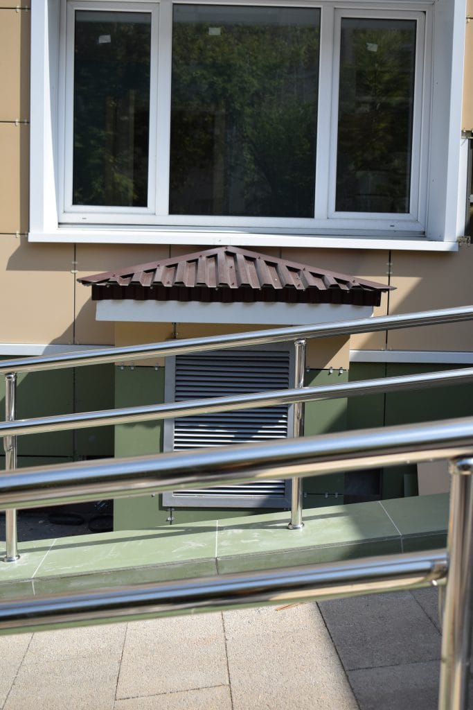 Очень оперативно на территории больницы были проведены работы по облицовке 13 вентиляционных шахт и четырех киосков. В частности, произведена замена металлических решеток на решетки из оцинкованного профнастила, выполнена замена отмосток, входных дверей. Киоскам, чтобы придать более выразительный архитектурный облик, выполнено устройство декорированной кровли.