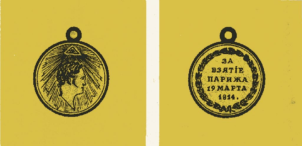 В честь этого события 205 лет назад, 30 августа 1814 года манифестом императора Александра I была учреждена наградная серебряная медаль, на лицевой стороне которой помещено погрудное, вправо обращенное изображение Александра I в лавровом венке и в сиянии «Всевидящего ока». На обратной стороне по всему обводу медали в лавровом венке прямая пятистрочная надпись: «За / взятiе / Парижа / 19 марта / 1814».