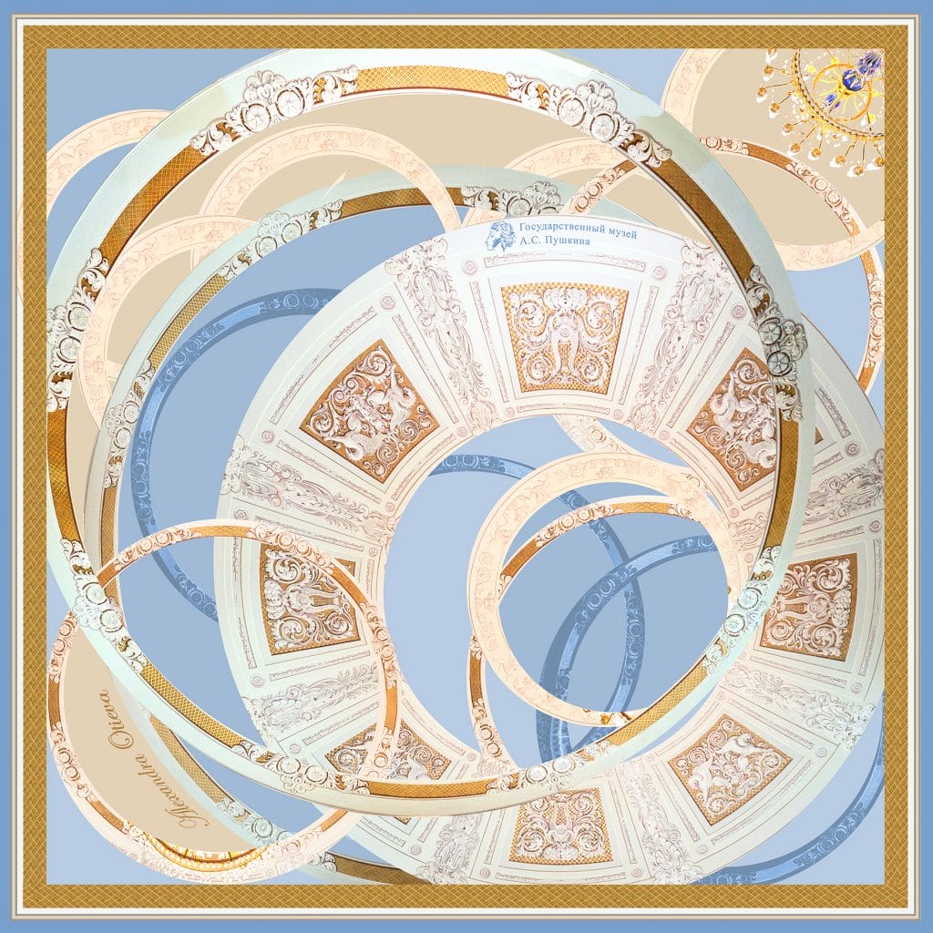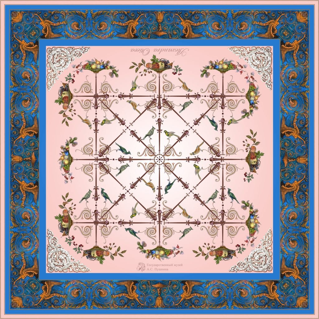 Специально для этой выставки, в год 220-летия со дня рождения Александра Сергеевича Пушкина, я создала несколько платков с декоративными орнаментами.