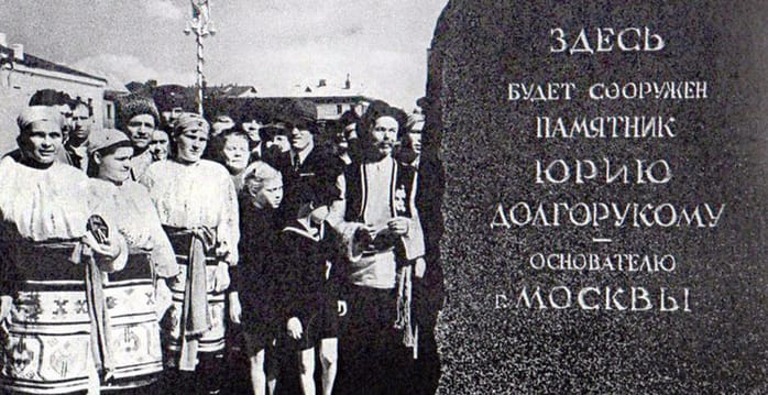 7 сентября 1947 года в череде прочих мероприятий, приуроченных к празднованию 800-летия столицы, на Советской площади (ныне – Тверской) был торжественно заложен мемориальный камень весьма внушительных размеров с надписью: «Здесь будет памятник Юрию Долгорукому – основателю Москвы».