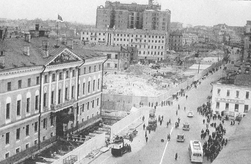 Передвижка здания Моссовета (ул. Горького, 31) положило начало реконструкции левой стороны улицы Горького, которая на протяжении от Советской (ныне – Тверской) площади до Пушкинской площади расширялась с 20 до 50 метров.