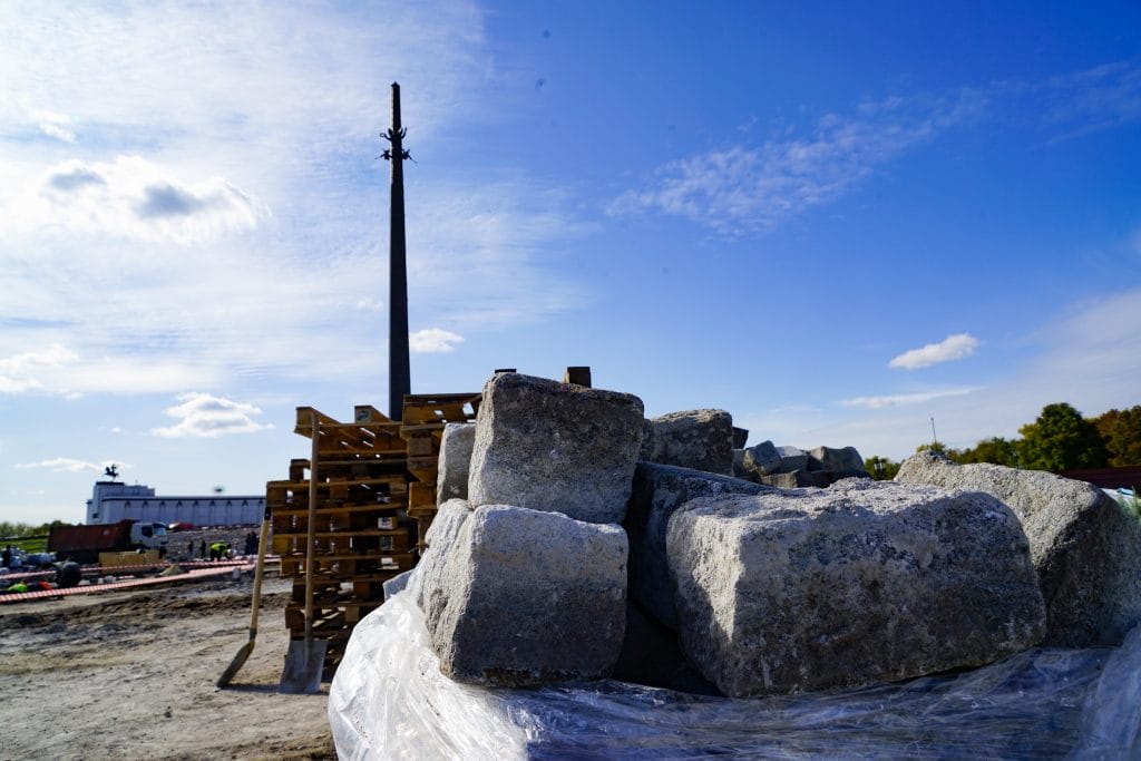 Поскольку брусчатка в Парке Победы имеет историческую ценность, то и обращение с ней соответствующее. Каждый камень ремонтники бережно извлекают, очищают от песка, цемента и бетона, обрабатывают, после чего складывают в паллеты. В них брусчатка хранится на протяжении всего времени ремонта или замены основания. Как только работы завершаются – камень возвращают на свое место.