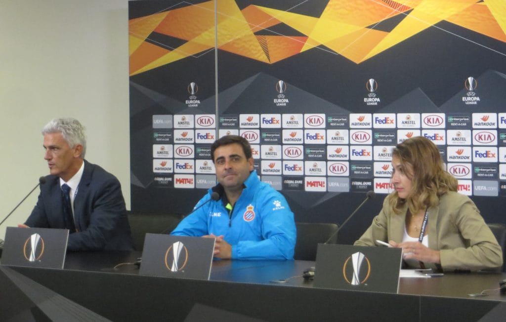 «Мы прикладывали много усилий, чтобы наши моменты воплощались в голы и очки. Сегодня было сложно. Играли против сильного соперника, который хорошо играет в прессинг и плотно встречает. Понимали: позиционные атаки развивать будет сложно, нужно обороняться большими силами. Удалось бы им забить — наши шансы в атаке были бы минимальными. Все сложилось, как планировали. Первый мяч было забить тяжело, второй чуть проще: ЦСКА открывался. По второму тайму было видно, что мы нащупали свою игру. Последние три матча прогрессируем, и, наконец, виден результат, то, что мы задумали. Игроки способны выполнять требования в работе, как с мячом, так и без. Важна стабильность», – главный тренер «Эспаньола» Дэвид Гальего был сама любезность на встрече с журналистами.