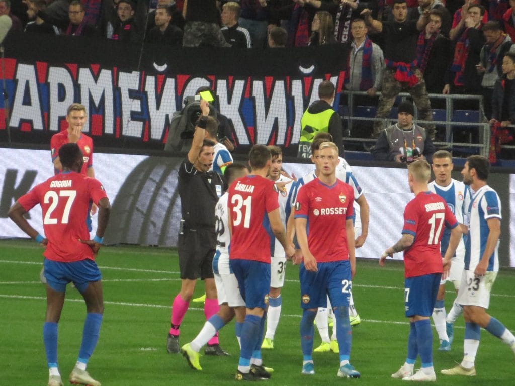 Гогуа этого показалось мало. Снова ошибка, и если бы легионер Поднебесной не стал симулировать, точно быть второму голу. ЦСКА, гонимый заполненными трибунами (испанские болельщики на игру не приехали), пытался завестись, но получился только дым, без огня. До штрафной красно-синие доходили, но дальше – пшик. А вот с огнем решить вопрос постарался турецкий арбитр Али Палабийик, принимавший решения не в пользу хозяев в ряде спорных случаях. Желтые карточки в этот осенний вечер просто летали над полем – даже представителям тренерского штаба обеих команд досталось по прямоугольнику солнечного цвета.