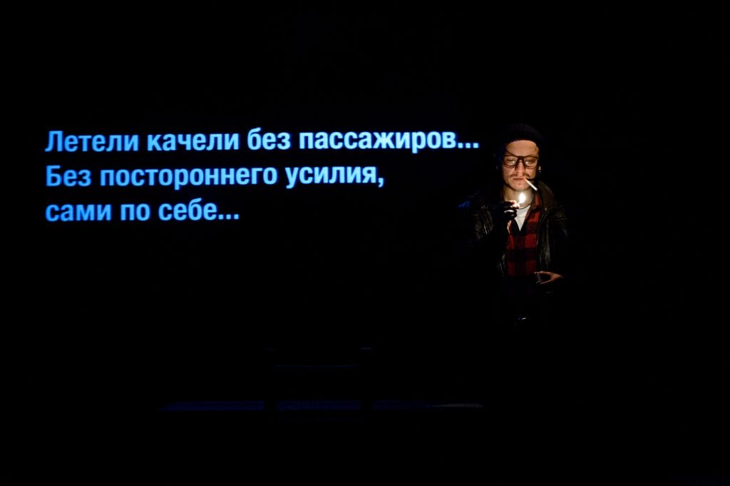 Мама Ксении (Ольга Лапшина) – женщина в возрасте, много работала и в итоге осталась одна. Щемящая сердце сцена возникает в этом, казалось бы, безвоздушном пространстве: Стас – единственный друг Ксении или не друг, но мать приглашает его на похороны дочери и просит рассказать ей о Летове. Музыкант становится единственной ниточкой, связывающей её с дочерью, с которой они вообщем-то и не были близки. Стас теряется, ведь, по его разумению, говорить о Летове – это все равно, что рассказывать о своей судьбе. Тогда женщина просит его спеть что-нибудь, что-то любимое из творчества музыканта. И Стас «поёт» – отходит на задник сцены и молчит, играет музыка, а на экране появляются титры. И это финал спектакля.