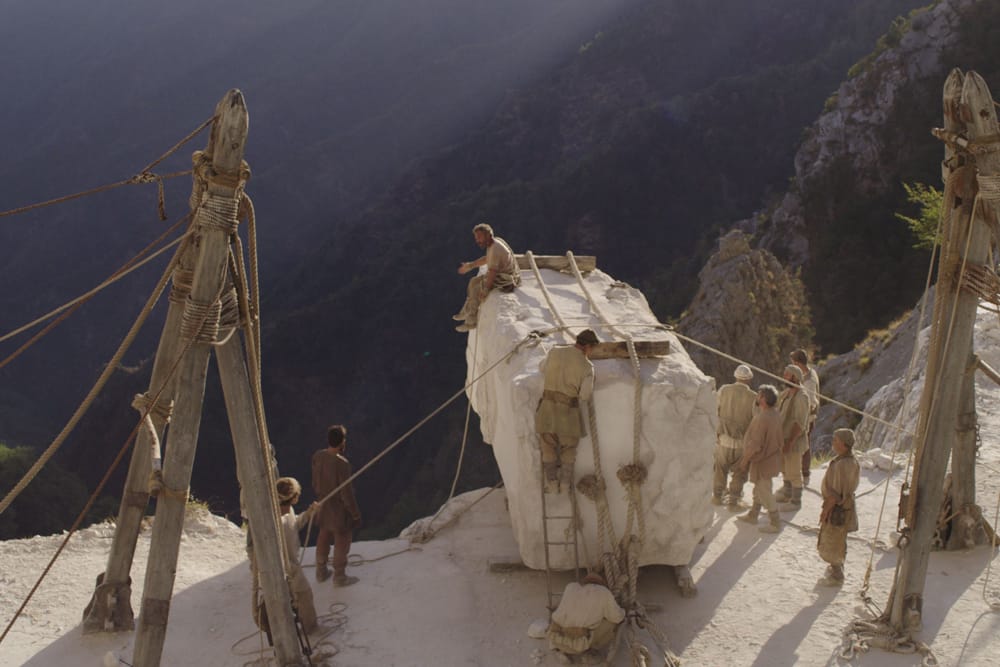 Фильм совсем на байопик, как его будут обозначать в афишах и не рассказывает ни биографию, ни даже о полном творческом наследии одного из титанов Возрождения, как к примеру книга о Микеланджело «Муки и радости» Ирвинга Ялома. Здесь показано всего несколько эпизодов из его жизни и работы в Ватикане, Флоренции и Карраре, иллюстрирующие даже не вехи жизненного пути, а мучительные размышления художника – является ли искусство синонимом греха? Попытка представить, что было вокруг и «из какого сора» и грязи он создавал свои белоснежные шедевры.