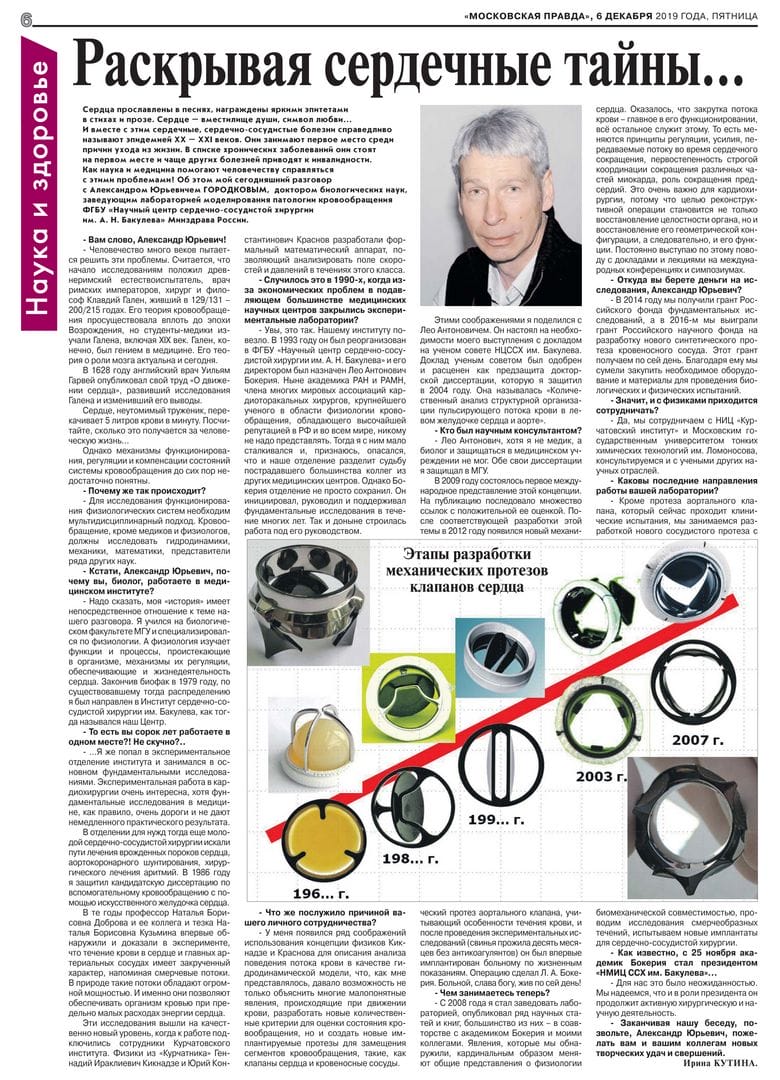 Как наука и медицина помогают человечеству справляться с этими проблемами? Об этом мой сегодняшний разговор с Александром Юрьевичем ГОРОДКОВЫМ, доктором биологических наук, заведующим лабораторией моделирования патологии кровообращения ФГБУ «Научный центр сердечно-сосудистой хирургии им. А. Н. Бакулева» Минздрава России.