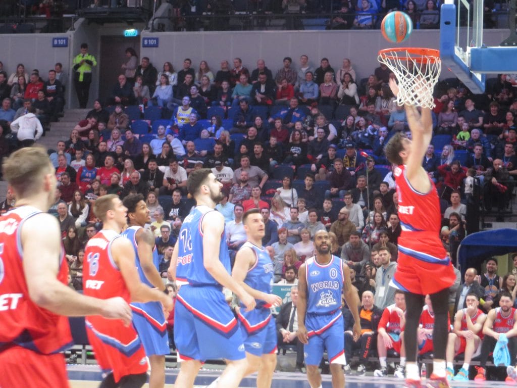 Собственно сам матч также выдался увлекательным. Звезды исправно радовали заполненный стадион «Динамо» бросками сверху, шикарными аллей-упами, бросками с разворотом на 360 градусов, передачами от щита, красивыми пасами партнерам, попаданием с дальних позиций. «Рулили» в командах неудержимые Швед и Джеймс.