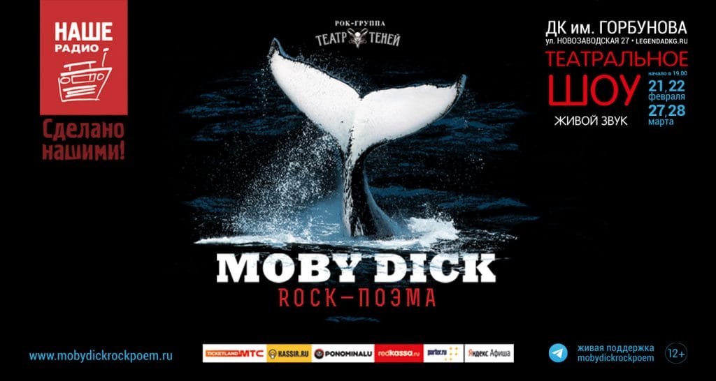 21 и 22 февраля, 27 и 28 марта 2020 года зрителей легендарной Горбушки ждет потрясающее театрально-музыкальное шоу – рок-поэма «Моби Дик».