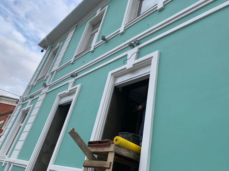 Общая площадь здания составляет 400 кв. метров. Все работы завершат к концу года.