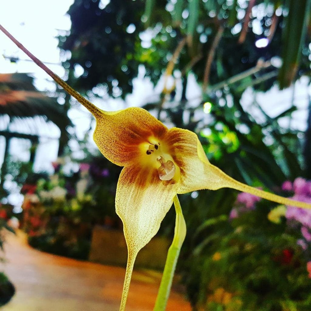 Редкая Дракула гигантская, или Орхидея-обезьянка (Dracula gigas), расцвела на фестивале «Тропическая зима» в Ботаническом саду МГУ «Аптекарский огород». Посетители могут увидеть её в одной из новых витрин с самыми ценнными и уникальными растениями.