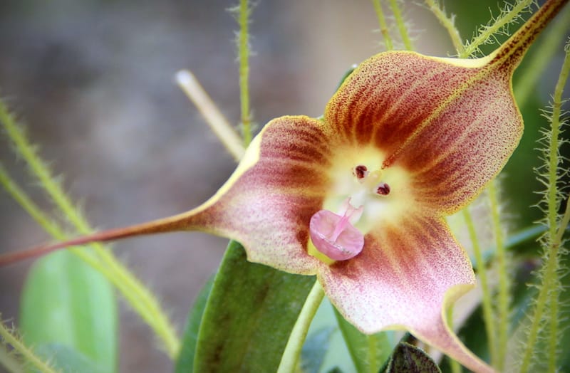 В роду Дракула представлено 118 видов орхидей, родина которых — Мексика, Центральная Америка, Колумбия, Перу и Эквадор. Некоторые виды отличаются кроваво-красным оттенком — отсюда и драматичное название. Кроме того, чашелистики Дракулы обладают необычными отростками. Сперва эти орхидеи были включены в род Масдеваллия, однако в 1978 стали сами по себе. Дракулы предпочитают тень и прохладную температуру. Орхидеи-обезьянки — невысокие эпифитные растения с короткими стеблями и длинными ремневидными листьями. У Дракул весьма крупная губа, по форме напоминающая гриб. Цветок достигает в ширину до 14 сантиметров. Три чашелистика соединены у основания и образуют чашу, а их отростки вытянуты далеко наружу и зачастую покрыты волосками.
