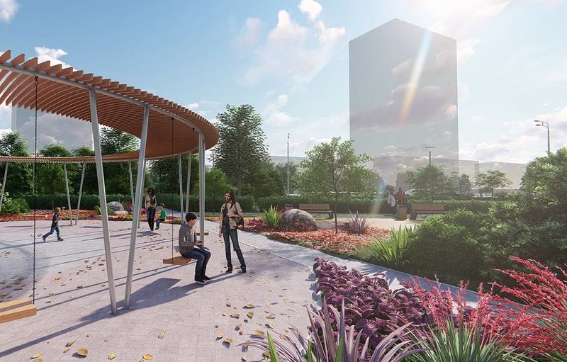 На улице Коштоянца появится больше мест для отдыха – сквер, спортивно-игровой кластер круговыми качелями, горками и лабиринтом