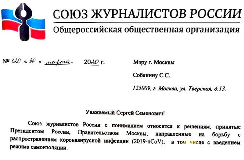 Союз журналистов России с уважением относится к решениям, принятым Президентом России и Правительством Москвы, направленным на борьбу с распространением коронавирусной инфекции (2019-nCoV), включая введение режима самоизоляции.