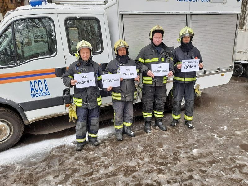 «В связи с принимаемыми Правительством Москвы мерами по проведению карантина и предотвращению распространения коронавирусной инфекции, пожарные и спасатели призывают людей без надобности не покидать дома и ответственно отнестись к проводимому карантину. Оставайтесь дома и берегите здоровье!» – говорится в сообщении Департамента по делам ГОЧСиПБ.