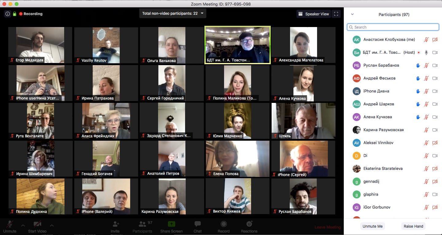 Невероятно, но факт: впервые в истории сбор труппы легендарного театра БДТ в Санкт-Петербурге состоялся виртуально. Причем, явка была полная: в виртуальном пространстве собралось 97 человек.