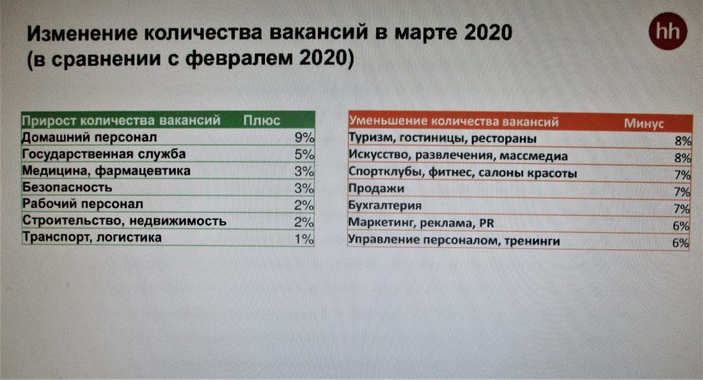 По данным экспертов, в феврале около 12% работодателей уже прекратили набор сотрудников, а в марте их было уже 40%; в апреле российскому рынку труда вообще грозит заморозка. Все это происходит на фоне постоянно усиливающихся мер по соблюдению режима самоизоляции.