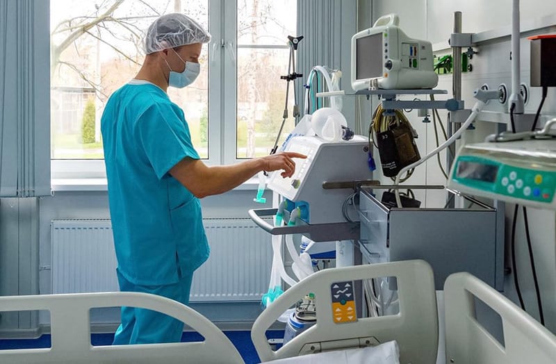 Коронавирусный стационар оснащен современным медицинским оборудованием, включая 2 КТ, 1 МРТ, 16 аппаратов ИВЛ и 20 наркозно-дыхательных аппаратов.