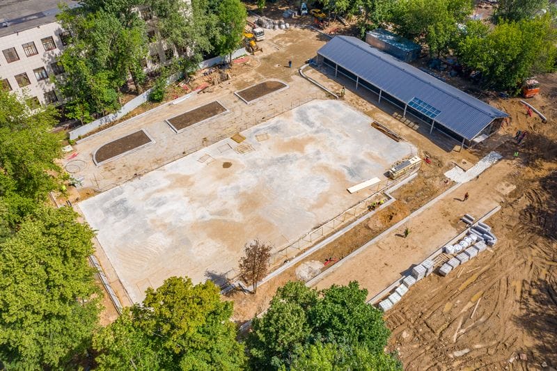 Рабочие уже завершили основные земляные работы – подготовлена площадка под новую хоккейную коробку, послойно уложено основание и залит фундамент, смонтирована трубная система охлаждения нового ледового поля и залита финишная бетонная технологическая плита.