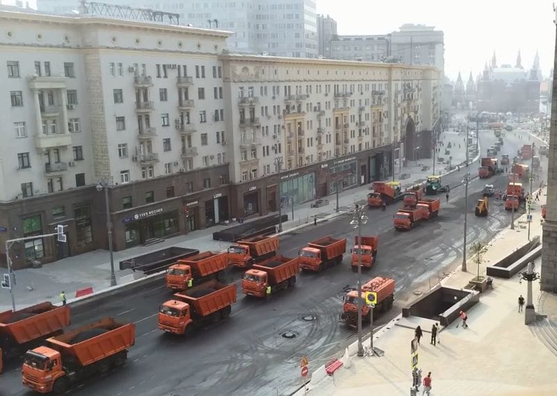 Асфальт на этом участке уложат «единым ковром». Такая технология укладки позволила не проводить ремонта дороги на этом участке Тверской улицы с 2016 года. При том, что для дорог первой категории, к которым относится Тверская, межремонтный срок службы асфальта составляет три года.