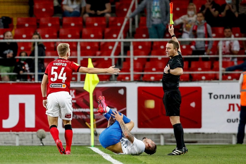 «Спартак» стартовал ярко, эмоционально и продуктивно. И пусть Кокорин «заболел», а Глушаков пришел на трибуны – ни то, ни другое не смутило атакующий порыв хозяев. Сначала Соболев эффектно замкнул навес с угла поля и головой отправил круглого в сетку ворот Джанаева. Что там проверял VAR – непонятно, как и возмутительно то, что судья выписал «горчичник» автору гола за снятую футболку, под которой была другая – с фото умершей недавно мамы игрока «Спартака». Как выразился самый многопишущий журналист страны Рабинер: «Возмутил бездумный, бездушный, тупой формализм арбитра». И тут можно добавить только матерные слова.