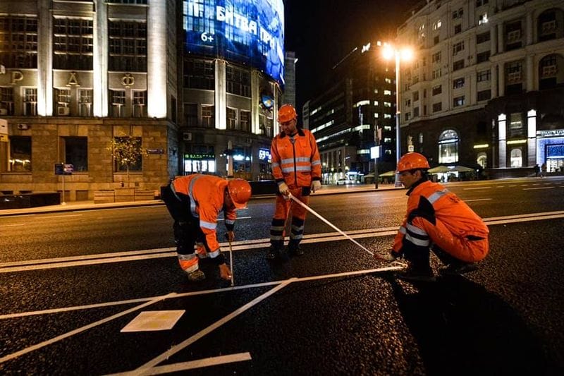 Как сообщает Твитер Комплекса городского хозяйства Москвы, всего на участке Тверской улицы протяженностью 1 300 метров нанесено свыше 10 000 погонных метров дорожных линий общей площадью 1 300 кв. метров.