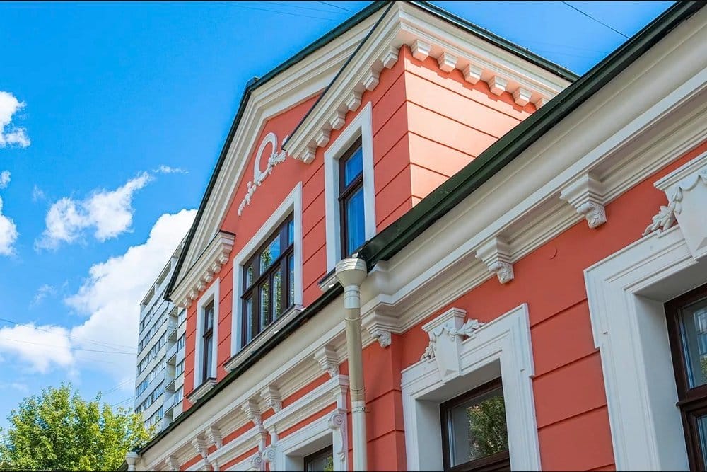 Особое внимание было уделено реставрации кровли и воссозданию утраченных элементов главного фасада: наличникам, подоконникам, лепным гирляндам под окнами, декоративным элементам в нише по центру фасада и по фронтону мезонина. По историческим образцам сделаны окна, двери, металлические козырьки.