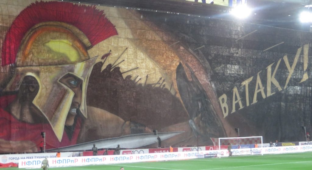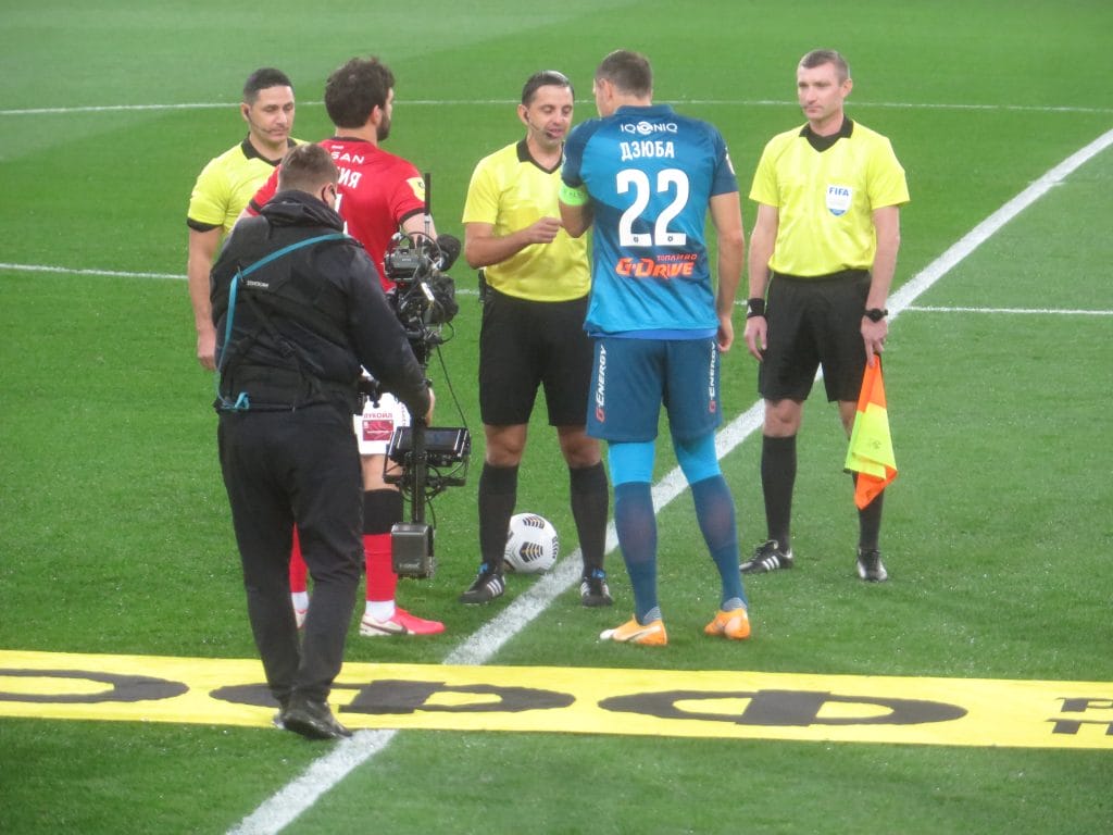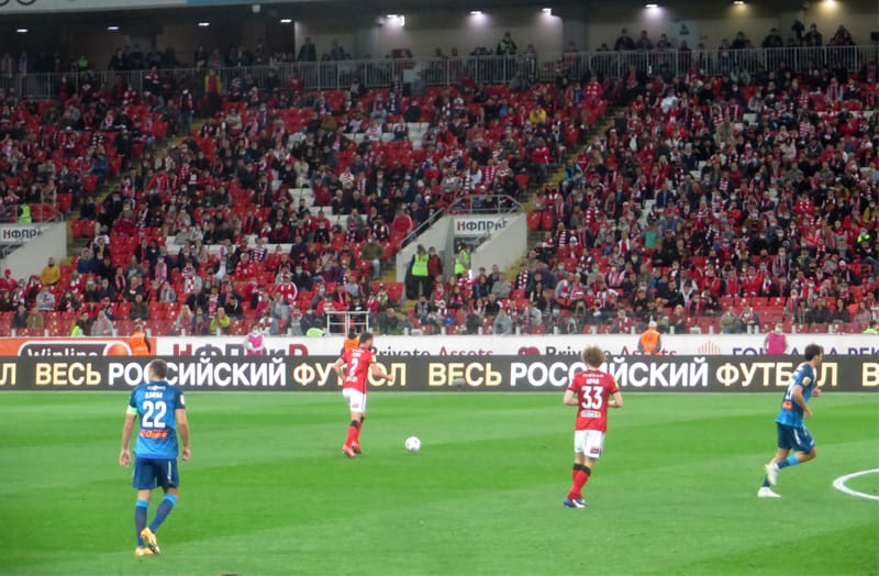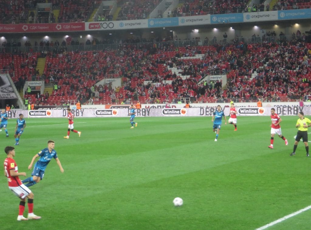 Стартовый свисток судьи Кукуяна потонул в гуле заполненной (по нормам пандемийной ситуации) арены, и «Зенит» взял мяч под контроль. Питерцы доминировали в первом тайме, москвичи были удачливее во втором. Болельщики хозяев уж очень сильно постарались – на протяжении матча они три раза меняли огромнейшие баннеры с разной степенью сарказма и эстетической ценности.