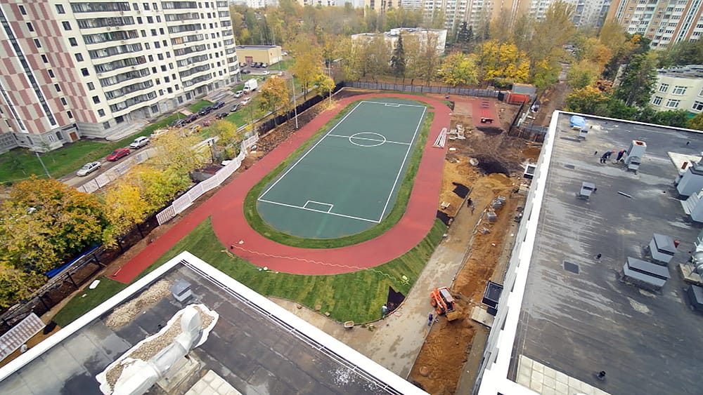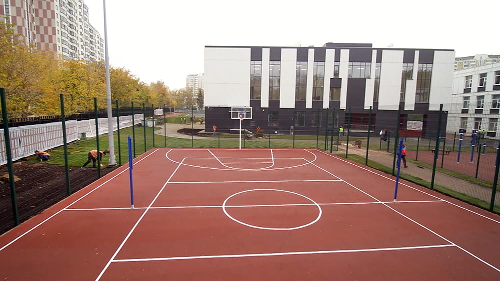 На школьном дворе будет создано спортивное ядро, установлены малые архитектурные формы для отдыха и детских подвижных игр, высажены деревья и кустарники, разбиты газоны и цветники.