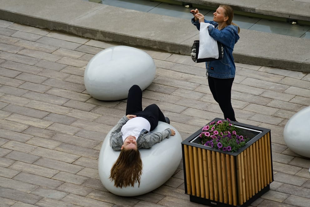 Реконструкция объекта вдохнула новую жизнь в эту всем известную достопримечательность Москвы. Уже около полутора месяцев обновленный Речной вокзал открыт для посетителей. Достаточно много среди прогуливающихся семей с детьми, особенно в выходные. Сюда заходят после росписи в загсах молодожены. Гуляют и, конечно же, фотографируются. Много молодежи, влюбленных со счастливыми лицами, для которых играют современную музыку уличные музыканты. Да и вообще на территории парка Речного вокзала (а она достаточно большая, 50 га) довольно много народа. Те, кому не особо хочется гулять пешком, катаются в синих прогулочных электровагончиках.