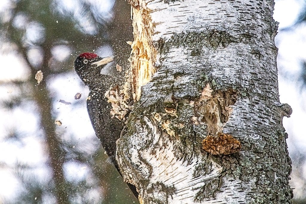 3. Из-за участка костной губчатой ткани, расположенной возле основания клюва голова у дятла не болит, так как она смягчает удары. Не бывает у дятлов и сотрясения мозга.