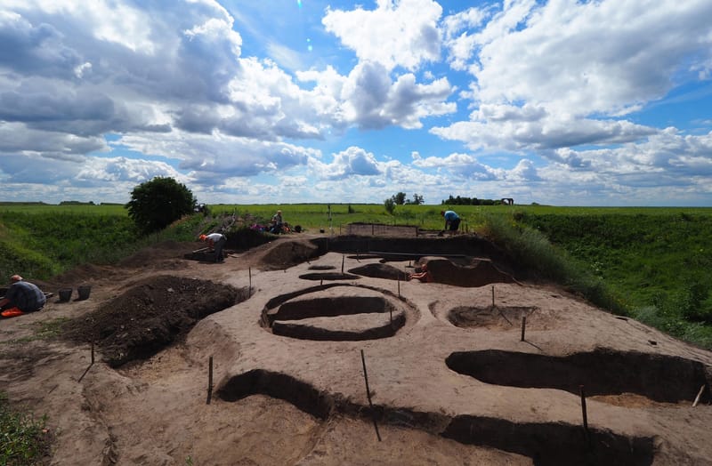 Минувшим летом Старорязанская экспедиция ИА РАН вела также работы на Северном городище Старой Рязани. Раскопки должны были объединить в единую зону ранее изученные участки: траншеи Василия Алексеевича Городцова 1926 года и раскопы Александра Львовича Монгайта 1967-1971 годов. Эти работы также принесли неожиданные находки, среди которых – костяное навершие плети в форме головы птицы и фрагмент горшка XI века с клеймом в форме трезубца – родового знака князей из рода Рюриковичей. Два подобных клейма были обнаружены в раскопках 1920-1930-х годов, а полностью идентичное клеймо было найдено в 1999 году в другой части Северного городища.