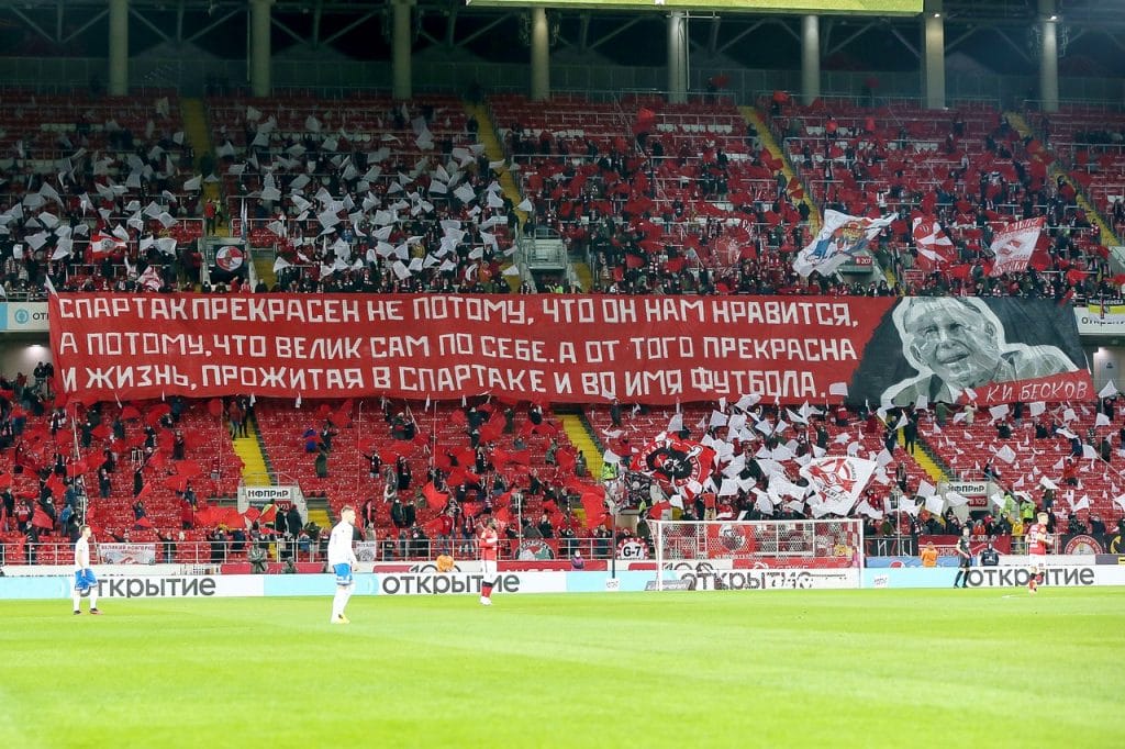 Спартаковские болельщики развернули баннер с цитатой Бескова: «Спартак» прекрасен не потому, что он нам нравится, а потому, что велик сам по себе. А от того прекрасна и жизнь, прожитая в «Спартаке» и во имя футбола».