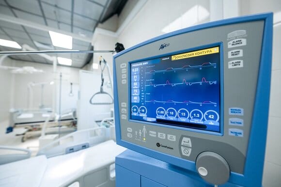 Реанимационные койки оборудованы специальными консолями для подачи трех видов медицинских газов – кислорода, вакуума и сжатого воздуха – для проведения полного комплекса респираторной (дыхательной) поддержки пациентам, включая применение инвазивных и неинвазивных методов.