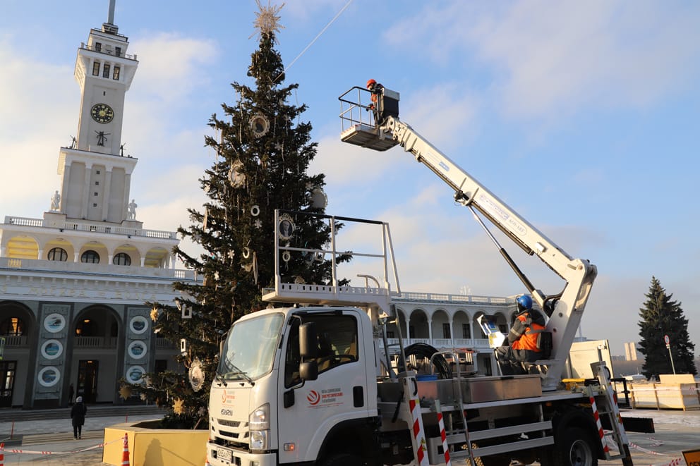 Как рассказали в Департаменте жилищно-коммунального хозяйства Москвы: «В парке Северного речного вокзала уже начали монтировать световые декоративные конструкции, светящиеся торшеры и деревья, цифры 2021 и девятиметровый новогодний шар».