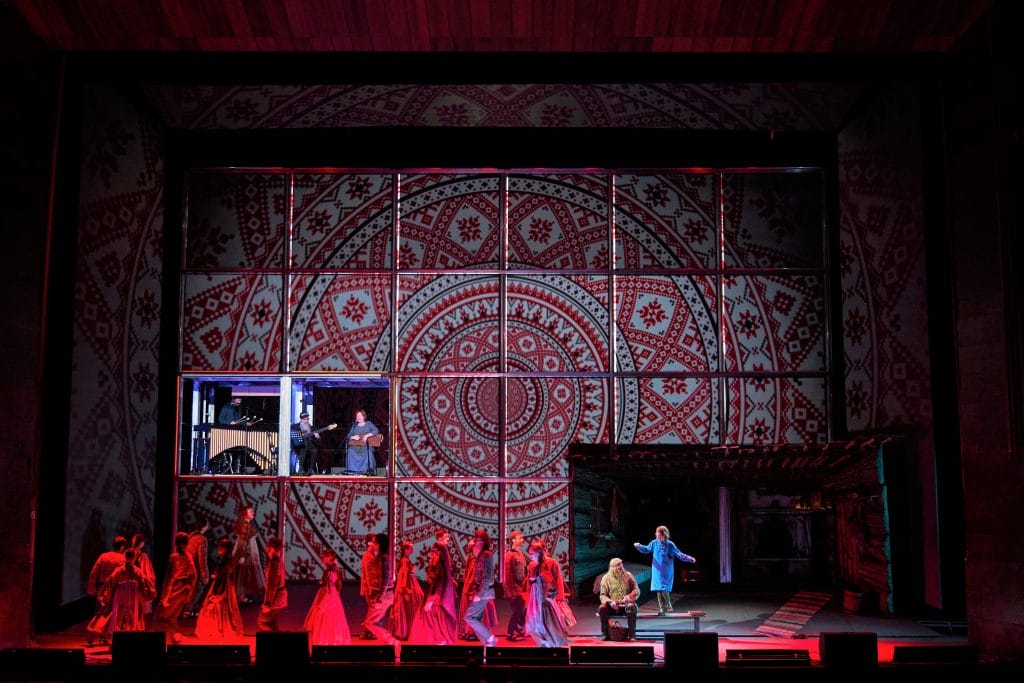 А еще по сцене течет река, бродит живой волк, дымится и накрывает зрительный зал ладан. И все это в обрамлении декораций, представляющих и иконостас, и храм, внутри которого вечно живут наши предки (сценография – Александр Цветной, художник по костюмам Алиса Меликова).