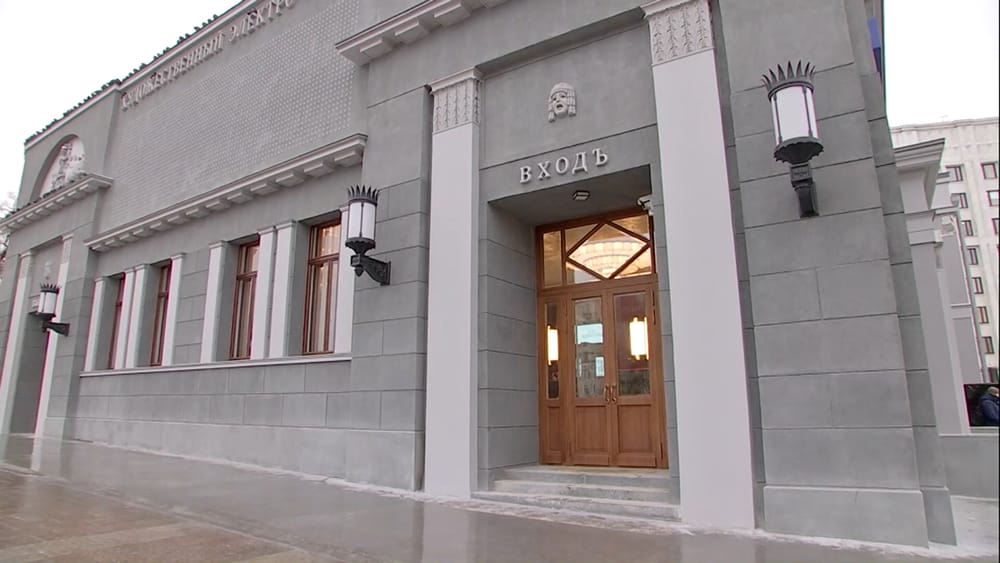 Специалисты сохранили две подлинные кровельные фермы, воссоздали внешний вид главного фасада. Он украшен терразитовым покрытием и максимально приближен к облику 1913 года. Восстановлен и исторический декор: мужской и женский маскароны, барельефы с изображением античных богов Гелиоса и Селены, а также исторические надписи «Входъ» и «Выходъ» и «Художественный электро-театръ». С двух сторон от каждого дверного проема установили фонари из чугуна, воссозданные по оригинальным историческим эскизам.