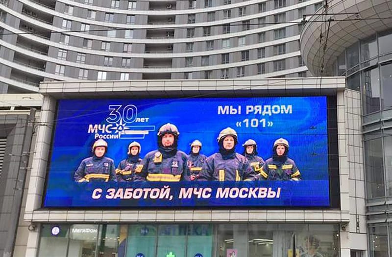 На 18 медиафасадах столицы в течение дня начали транслировать видеоролики в честь 30-летия со дня основания МЧС России. Специальный проект посвящен пожарным столичного управления МЧС России, которые по первому зову приходят на помощь людям, встают на борьбу со стихией, преодолевают последствия катастроф. Многие из них даже в свой праздник будут нести боевую вахту на страже безопасности москвичей и гостей столицы.