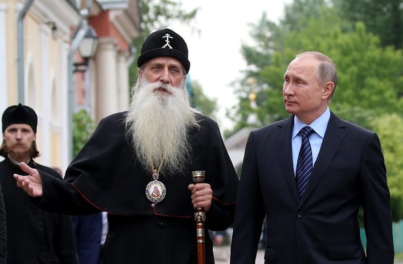 На снимке: Глава Русской Старообрядческой Церкви митрополит Корнилий и президент РФ Владимир Путин.