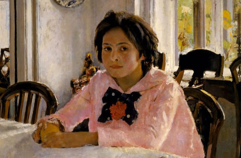 Когда летом 1887 года в подмосковной усадьбе Абрамцево, принадлежавшей купцу, строителю железных дорог и покровителю искусств Савве Ивановичу Мамонтову, писалась картина «Девочка с персиками», дочери Мамонтова – Верочке – было 12 лет, а художнику Валентину Серову – 22 года. Десятилетним мальчиком Серов впервые пришел в Абрамцево, Вера в то время только-только появилась на свет. Он был сверстник ее любимых братьев, с детства подолгу жил у Мамонтовых, участвовал во многих абрамцевских «творческих безобразиях». Он был в мамонтовской семье совершенно свой (его мать дружила с женой Саввы Ивановича, Елизаветой Григорьевной). Правда, в Абрамцеве Серова все упорно зовут не Валентин, а Антон, так расшифровав его детское прозвище «Тоша» (производное от Валентоша). Всеволод, старший брат Веры, вспоминал о Валентине Серове: «Трогательно дружил он с моими сестрами, которые были много моложе его, и при этом удивительно добродушно переносил всяческие их проказы… На почве этой дружбы и явилась на свет знаменитая серовская «Девочка с персиками», один из перлов русской портретной живописи. Только благодаря своей дружбе удалось Серову уговорить мою сестру Веру позировать ему. Двенадцатилетнюю жизнерадостную, бойкую девочку в летний погожий день так тянет на волю, побегать, пошалить. А тут сиди в комнате за столом, да еще поменьше шевелись. Эта работа Серова потребовала много сеансов, пришлось сестре долго позировать для нее. Да Антон и сам признавал медленность своей работы, очень этим мучился и впоследствии говорил сестре, что он ее неоплатный должник».