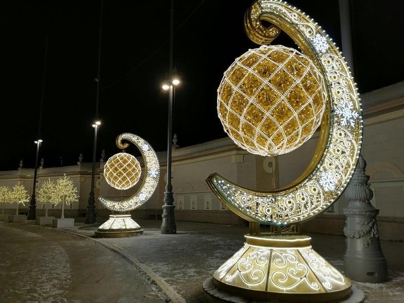 Большая часть световых инсталляций, установленных в Москве к новогодним и рождественским праздникам, горят 24 часа в сутки, не выключаясь даже днем.