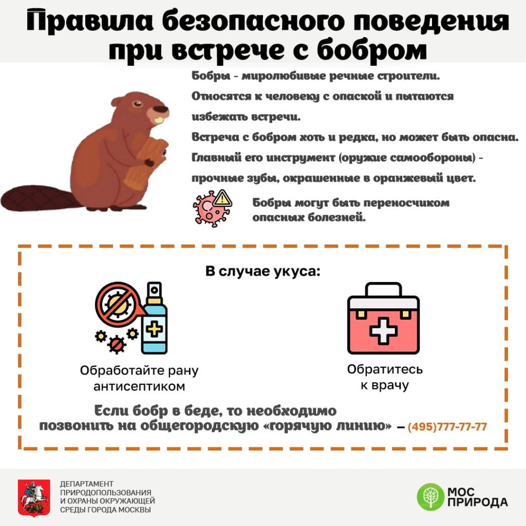 Мосприрода подготовила памятку «Правила поведения при встрече с бобром»